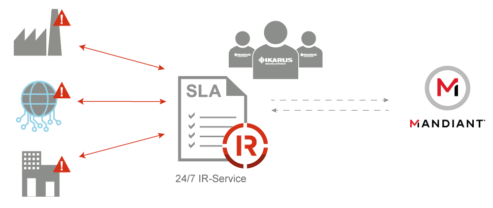 The service agreement with IKARUS also guarantees immediate access to Mandiant‘s expertise and cyber threat intelligence if required. If a case reaches dimensions that cannot be efficiently handled by IKARUS alone, we will request international specialists from Mandiant in consultation with you.